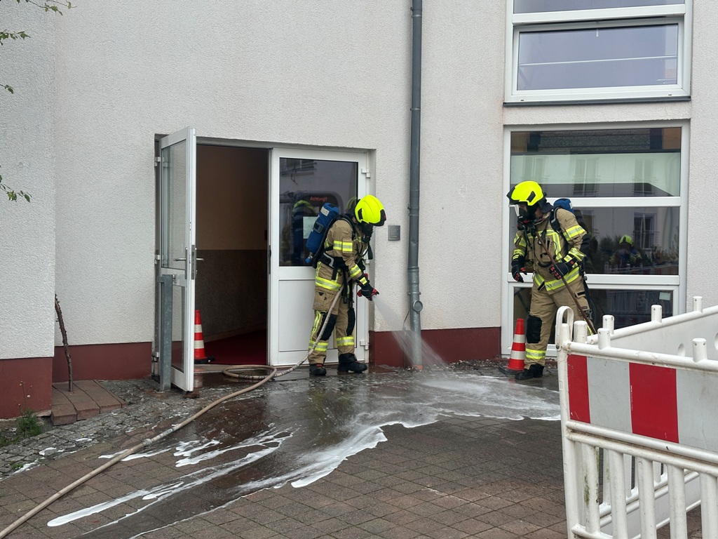 12.10.2025: Um 07.39 Uhr wurde die Feuerwehr Kelbra mit dem Stichwort "Gasgeruch" in eine Fachklinik in der Langen Straße in Kelbra alarmiert. Noch vor dem Ausrücken kam die Information durch die Rettungsleitstelle, dass es sich nicht um einen klassischen Gasaustritt handelt, sondern durch Unbekannte eine nicht genau bestimmbare Flüssigkeit vor den Haupteingängen der Klinikhäuser ausgebracht wurde. Folge war eine ätzende, stark beisende Geruchsbelästigung, die sich bereits in den Erdgeschossen zweier Klinikgebäude ausgebreitet hatte. Hierdurch erlitten insgesamt 4 Personen Beschwerden wie Kopfweh, Übelkeit und Schwindel und mussten durch den ebenfalls alarmierten Rettungsdienst ambulant behandelt werden. Die Aufstellung der Einsatzfahrzeuge erfolgte zunächst mit einem entsprechenden Sicherheitsabstand und ein erster Trupp führte eine Lageerkundung unter Atemschutz mit dem Gasmessgerät durch. Parallel dazu wurde über das Klinikpersonal eine vollständige Evakuierung der beiden Häuser veranlasst und die Eingangsbereiche gesperrt. Gemeinsam mit dem Personal der Fachklinik wurden alle über Beschwerden klagenden Personen dem Rettungsdienst zugeführt. Durch den Angriffstrupp wurde währenddessen mittels PH-Papier ein Abstrich der Flüssigkeit genommen, durch den eine leicht saure Flüssigkeit bestätigt werden konnte. Nachfolgend wurde mittels Kübelspritze eine kleine Menge Wasser auf den betroffenen Bereich aufgebracht um auszuschließen, dass eine chemische Reaktion der Flüssigkeit auf Wasser gegeben ist. Nachdem dies nicht der Fall war wurden die Eingangsbereiche beider Häuser mittels eines D-Rohres einer Grobreinigung unterzogen. Im Anschluss erfolgten intensive Belüftungsmaßnahmen mittels zweier Überdrucklüfter an beiden Häusern. Hierdurch konnte die Geruchsbelästigung deutlich reduziert werden. Nach Herstellung der Abmarschbereitschaft wurde die Einsatzstelle an den Betreiber der Klinik übergeben und der eigene Standort angefahren. Im Einsatz für gut 3 Stunden waren 22 Einsatzkräfte der Feuerwehren Kelbra und Thürungen mit 5 Fahrzeugen, der Rettungsdienst mit 2 RTW und NEF sowie die Polizei. (43-2025)