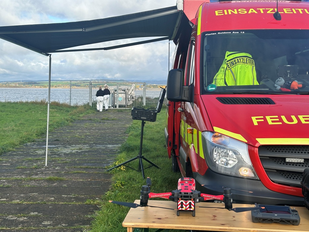 17.10.2025: Um 09.42 Uhr wurde die Feuerwehr Kelbra telefonisch durch den Verbandsgemeindewehrleiter zur Unterstützung des Kreis-Veterinäramts Mansfeld-Südharz alarmiert. Aufgabe war es mittels Drohne Überflüge am Stausee Kelbra zu machen, um den Mitarbeitern der Kreisverwaltung einen Überblick über Anzahl und Standorte toter Kraniche zu ermöglichen. Diese konnten in größerer Stückzahl festgestellt werden. Als Ursache wird eine sich ausbreitende Geflügelseuche unter den Zugvögeln vermutet. Im Einsatz bis ca. 11.55 Uhr waren 2 Einsaztkräfte der Feuerwehr Kelbra mit dem ELW. (44-2025)