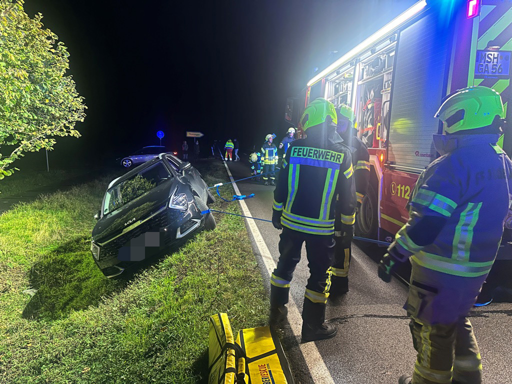 17.10.2025: Um 20.24 Uhr wurde die Feuerwehr Kelbra mit dem Stichwort "Verkehrsunfall eingeklemmte Person - PKW auf Seite droht auf Dach zu stürzen Personen im Fahrzeug" auf die Bundesstraße 85 in Richtung Thürungen alarmiert. Vor Ort zeigte sich ein PKW, der glücklicherweise noch auf den Rädern stand, sich aber in starker Schräglage im Straßengraben befand. Während 2 Personen das Fahrzeug schon verlassen hatte war der Fahrer noch im PKW, allerdings nicht eingeklemmt oder eingeschlossen. Da das Fahrzeug augenscheinlich unbeschädigt war, wurde eine Sicherung mittels Spanngurten am HLF der Feuerwehr Kelbra angeschlagen, sodass ein weiteres Abrutschen und Umkippen ausgeschlossen werden konnte. Der Fahrer konnte nun eigenständig das Fahrzeug verlassen. Nach Eintreffen des Abschleppdienstes wurde die Hinterachse des PKW durch das LF 16 der FF Thürungen und die Vorderachse mittels Seilwinde des Abschleppers gesichert, sodass das HLF umgesetzt werden konnte. Somit war Platz den PKW schonend ohne Beschädigung wieder auf die Straße zu ziehen. Der PKw war fahrbereit und konnte die Einsatzstelle eigenständig verlassen. Die Insassen wurden durch den ebenfalls alarmierten Rettungsdienst gecheckt blieben aber alle unverletzt. Im Einsatz bis kurz vor 23.00 Uhr waren 20 Einsaztkräfte der Feuerwehren Kelbra und Thürungen mit 5 Fahrzeugen, der Rettungsdienst und die Polizei. Die ebenfalls alarmierte Feuerwehr Berga konnte den Einsatz auf Anfahrt abbrechen. (46-2025)